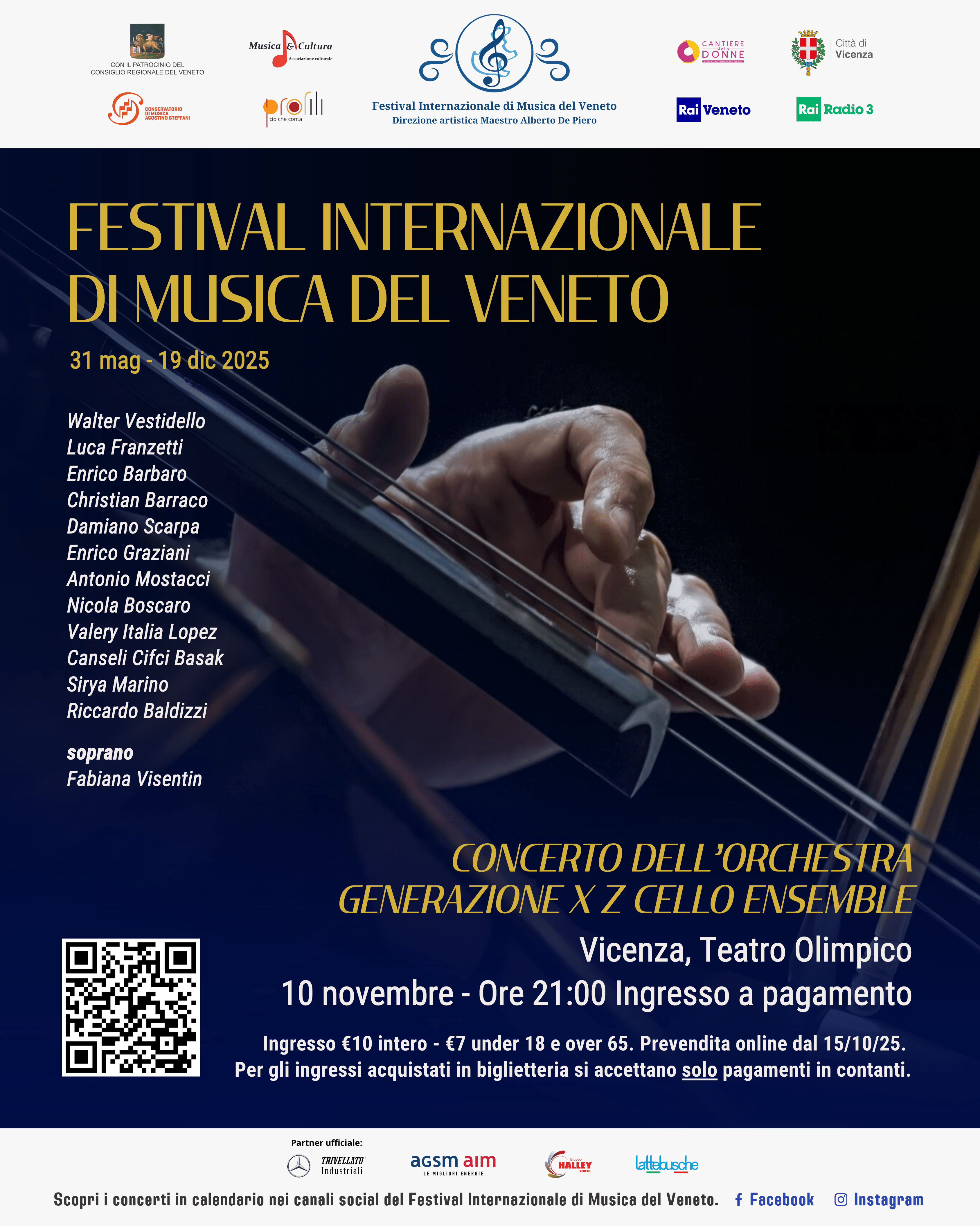 Il 10 novembre, alle ore 21:00, al Teatro Olimpico di Vicenza: dodici violoncellisti d’eccellenza, maestri e giovani talenti, suonano insieme alla voce intensa e raffinata della soprano Fabiana Visentin.